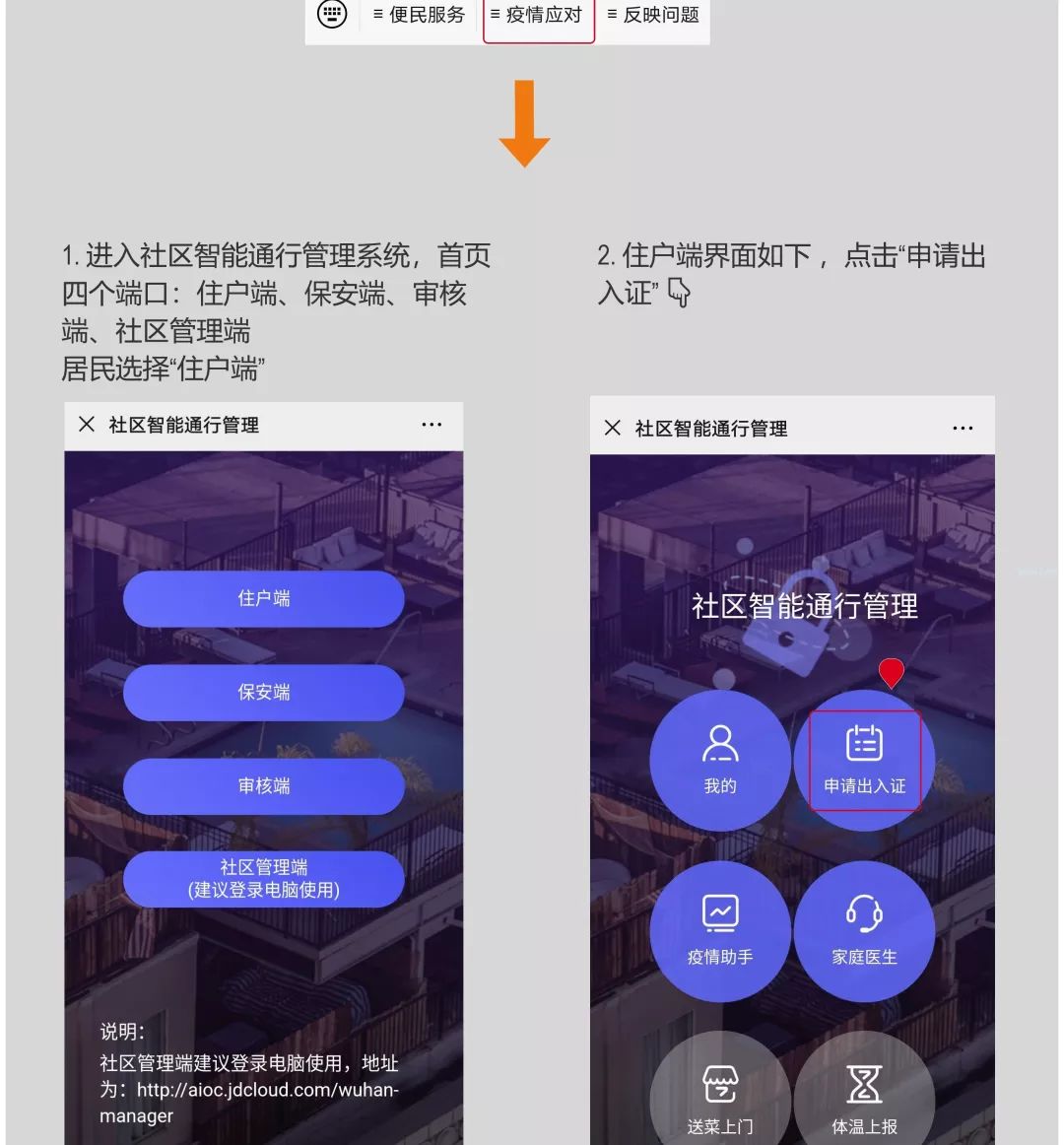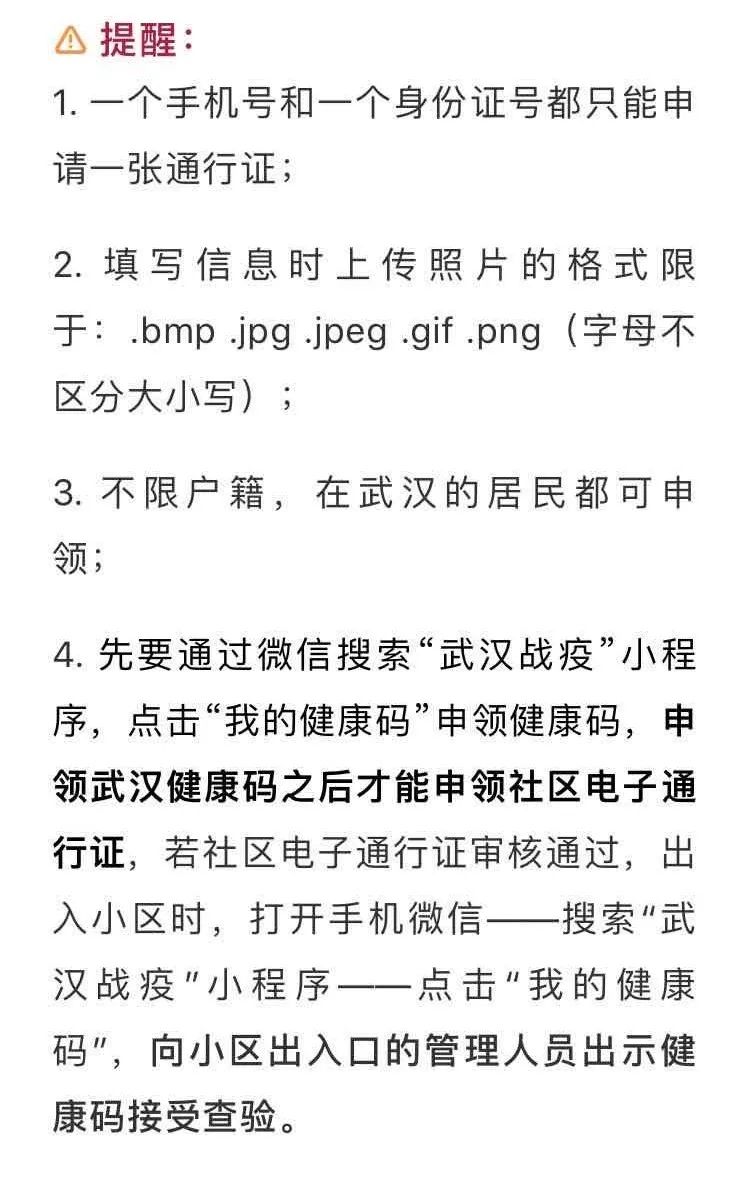 【疫情防控】武汉将全市推广社区电子通行证,如何申领? 2020-03-04 20:41 湖北省食品药品监督管理局 0 3月4日下午,认证为“武汉市人民政府总值班室”的公众号“武汉市长专线”发布消息:武汉市将在全市范围内推广社区电子通行证,该通行证用于小区出入管理。社区电子通行证?如何申领,如何使用呢? 武汉社区通行证申领入口
