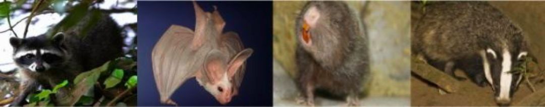 很多野生动物都可能携带病原体,成为传播媒介。如:果子狸、蝙蝠、竹鼠、獾等均是冠状病毒的常见宿主。目前研究显示,新型冠状病毒与蝙蝠 SARS 样冠状病毒(bat-SL-CoVZC45)同源性达 85%以上。初始发生大多起源于人与动物交易市场的鲜活动物接触,新型冠状病毒在从蝙蝠等动物到人的传播过程中很可能存在未知的中间宿主媒介。因此,不要吃未经检疫合格的野生动物等食品。