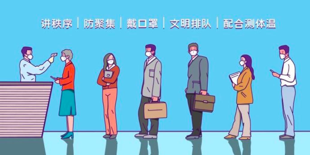 (4) 主动配合体温检测。排队过安检和等候时,尽量与他人保持1米以上的距离,避免交谈和接触。尽量减少在车站停留时间。