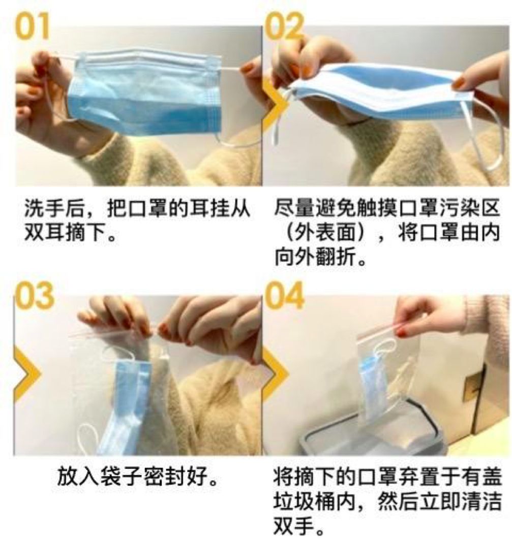(3) 保持良好的卫生习惯,全程佩戴口罩。注意手卫生,尽量避免用手触摸公共物品,避免用手直接触摸口鼻眼。