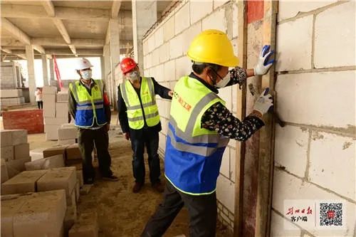 整个施工现场只设一个出入口,工人们佩戴口罩和安全帽上岗,岗前岗后都必须经过严格的体温检测和信息登记。同时施工期间合理安排工序,严格管理现场,避免工人扎堆作业,施工车辆进入工地前全部进行消毒。