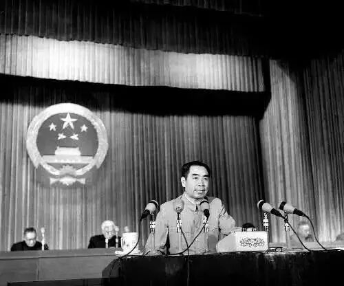 第一届全国人大一次会议上周恩来总理作《政府工作报告》。(来源:新华社)第一届全国人民代表大会第一次会议于1954年9月15日至9月28日在北京召开。代表总人数1226人(其中女代表147人,少数民族代表178人)。中央人民政府主席毛泽东致开幕词。会议听取了中华人民共和国宪法起草委员会委员刘少奇《关于中华人民共和国宪法草案的报告》。中央人民政府政务院总理周恩来《政府工作报告》。