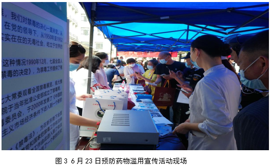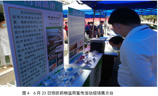 宣传活动现场摆放预防药物滥用宣传展板,设置了毒品和容易成瘾的药品展示台、由医务人员组成药物滥用及合理用药专家咨询台,展开药物滥用及合理用药知识科普宣传、有奖答题,群众积极参与问卷调查。现场发放精心编辑制作的《药物滥用监测宣传手册》、《合理用药拒绝滥用》、《合理用药远离毒品》等宣传品及资料,共计1500余份。
