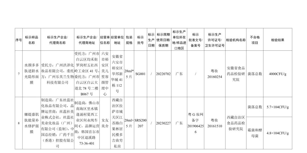 附件:8批次不合格化妆品信息
