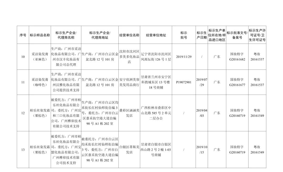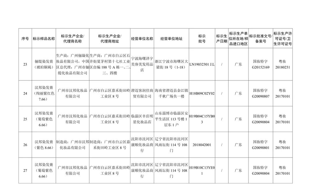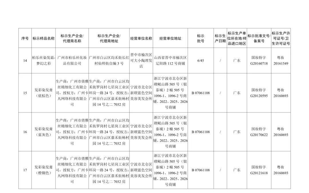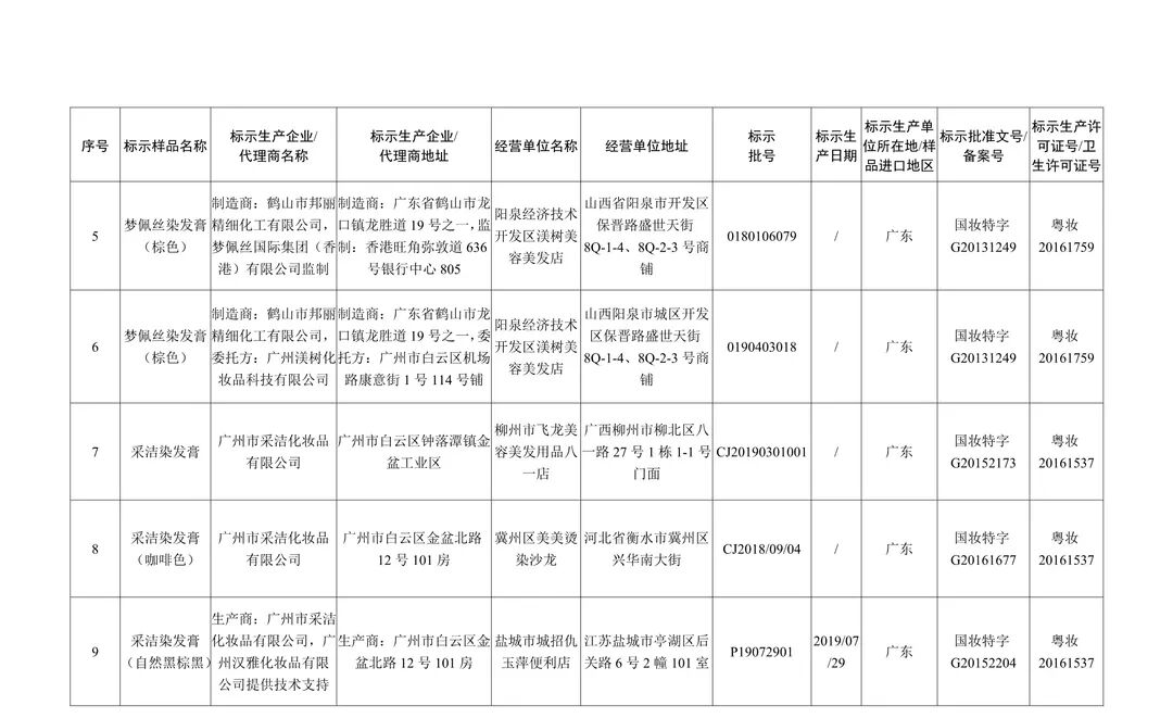 在国家化妆品监督抽检工作中,经安徽省食品药品检验研究院等单位检验,标示为北京御奇日通化妆品有限公司生产的安之酸营养炫彩系列久益彩染焗油膏棕色等5批次染发类产品,明可丽亚化妆品(厦门)有限公司生产的香蒲丽保湿焕采防晒霜1批次防晒类产品,广州乐芙兰生物科技有限公司生产的水颜多多肽逆龄水光隐形面膜等2批次面膜类产品不合格(见附件)。