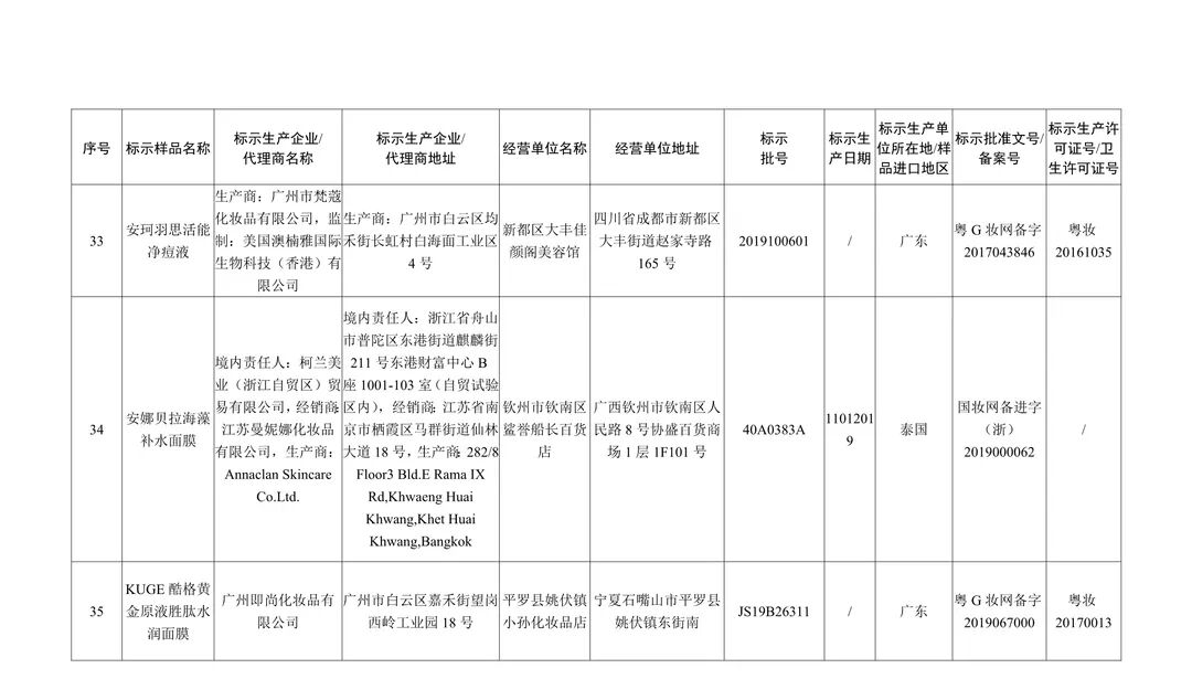 国家药监局关于停止销售35批次假冒化妆品的通告(2020年第66号)