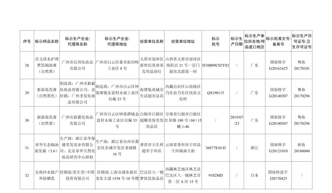 针对化妆品监督检查中发现的问题,经广东、上海、浙江省(市)药品监督管理部门调查核实,标示名称为宣邑染发膏(自然黑)等31批次染发类产品,标示名称为安热沙水能户外防晒乳1批次防晒类产品,标示名称为安珂羽思活能净痘液1批次祛痘/抗粉刺类产品,标示名称为安娜贝拉海藻补水面膜等2批次面膜类产品为假冒产品(见附件)。
