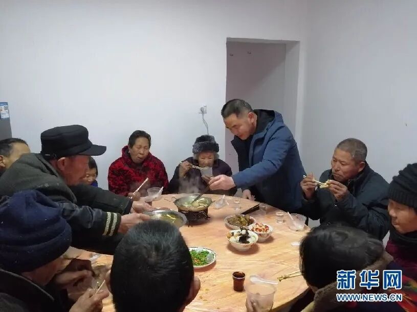 2019农历小年,4名驻村工作队队员从自家带来肉、蛋、奶、油等,邀请10户扶贫困户代表到工作队驻地同吃团年饭。大家一同做饭,各显厨艺,围桌而座。一盘盘可口的饭菜,一句句温暖的问候,一阵阵爽朗的笑声,缩短了双方的感情距离。