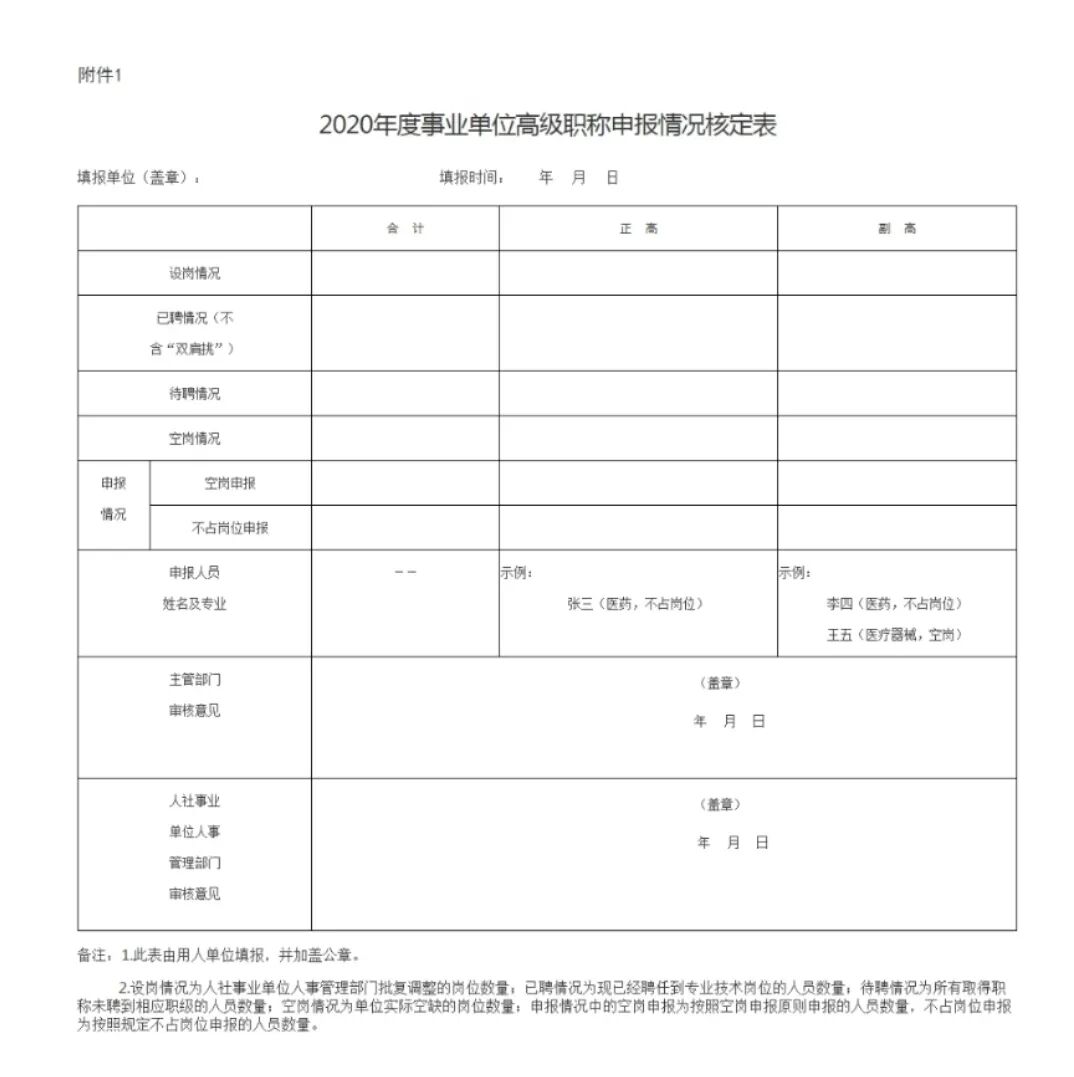 附件:1.2020年度事业单位高级职称申报情况核定表