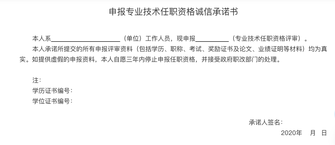 10.《个人申报专业技术任职资格诚信承诺书》原件1份